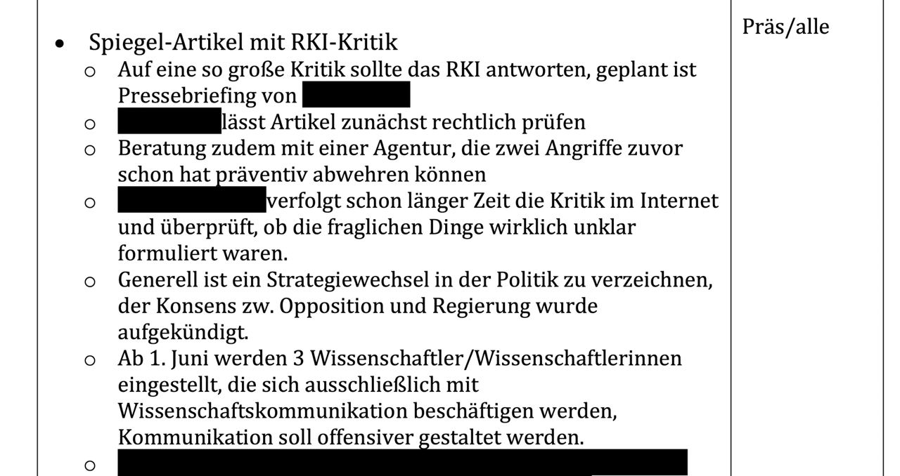 Spiegel-Artikel mit RKI-Kritik Auf eine so große Kritik sollte das RKI antworten, geplant ist Pressebriefing von lässt Artikel zunächst rechtlich prüfen Beratung zudem mit einer Agentur, die zwei Angriffe zuvor schon hat präventiv abwehren können.